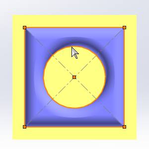 Again, you can see that the emboss starts at the boundary defined by the feature geometry, and the cross section defines the shape of the emboss in Z.