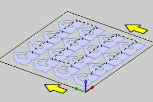 Thermal Distance - allows you to set a minimum distance to jump between the offset value of one toolpath to the offset of another. In most cases, this is used to make sure that the distance between one completed part and the next are far enough away that the heat from the cuts does not build up enough to cause warping. For more information on Thermal Distance, click here.