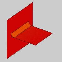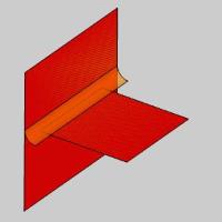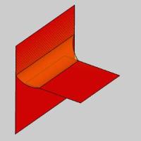 The boundary options determine how the fillet is trimmed at the outer boundaries. The following image shows the two original surfaces as a reference to the result shown below each option.