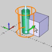 The following image shows the CAD preview entity for a cylinder that is moved.