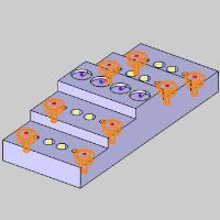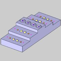 In the example file provided, a solid has been created with color coded points to dictate the location of the various holes we will be creating.