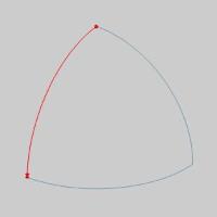 The 3 Edge Surface function creates a 3-dimensional surface using 3 connected edge curves. To perform the function, you chain select the three geometry curves in the Workspace one at a time, and then press the Spacebar to confirm the selections. The direction of the selected chains control the outcome of the surface so the chains should follow the same direction.