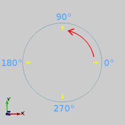 The following image shows the angles and the positive direction of rotation used when creating arcs.