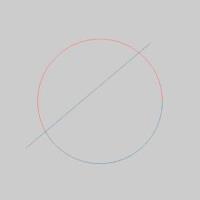 Similar to the first example, a line intersects the arc, but in this case, it intersects in two places instead of one.