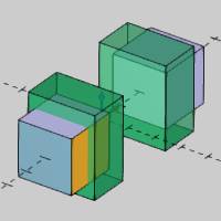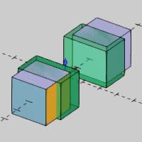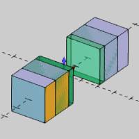 Notice the change in the CAD preview.Youcan see that the scaling is no longer moving the cubes away from their original location, because they are now being scaled as individual entities.You can also see that each surface of the unstitched cube is now also being scaled individually.