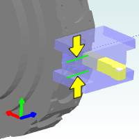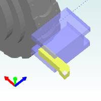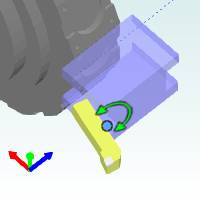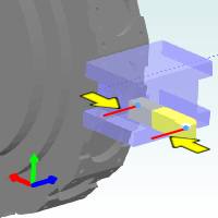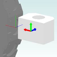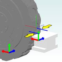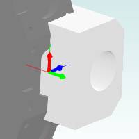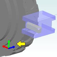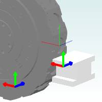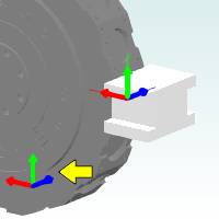 Tip: You can use the dynamic gnomon that displays in the lower-left corner of the preview window as the reference to which way the Shift values move tools or adapters from the mounting location. This gnomon indicates the positive axes directions of the mounting location's coordinate system (when a tool or adapter is selected in the device tree).
