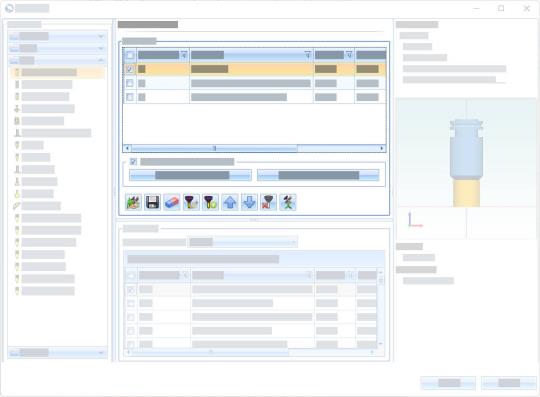 This area contains all tools assigned to the job. You can select a tool in the crib to modify it, create new tools, and even add those new tools to the Tool Library.