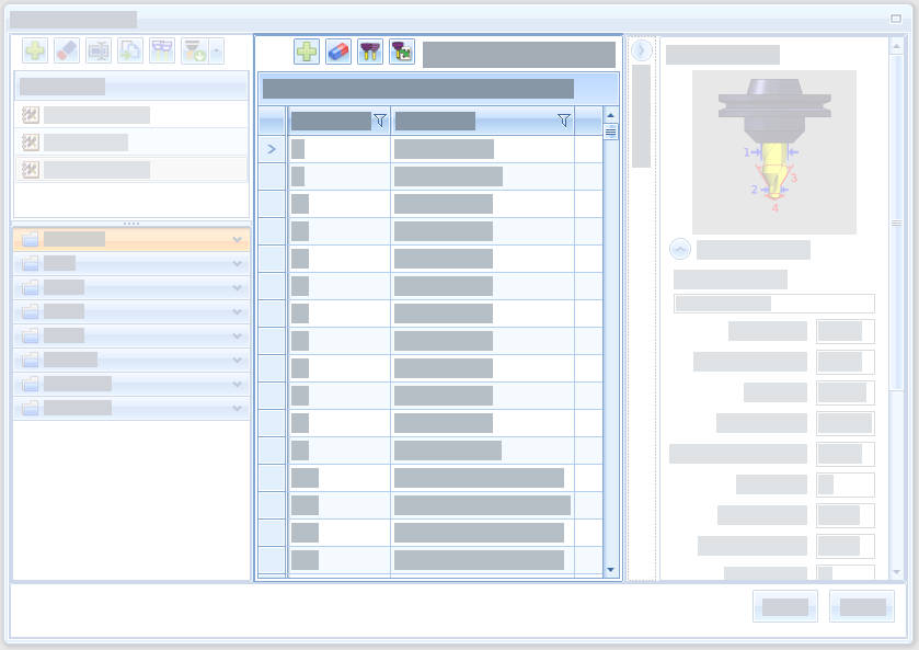 From this dialog you can view, add, delete, and copy libraries and their tools, and edit existing tools in the Tool Parameters dialog on the right, add and delete tools.