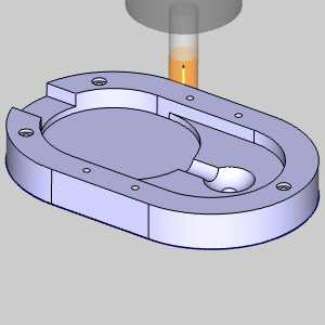 1. Since our toolpath is showing the tool position with no compensation, we can backplot the first position to make sure we are avoiding a gouge.