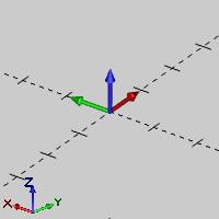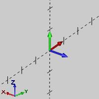 The Axis X-Y - | This shows the position and orientation of X, and Y axis of the current UCS, as well as the unit Tick Marks. The color and number of Tick Marks can be adjusted in Settings Part and Settings Default, and its visibility can be toggled in the same screens. |