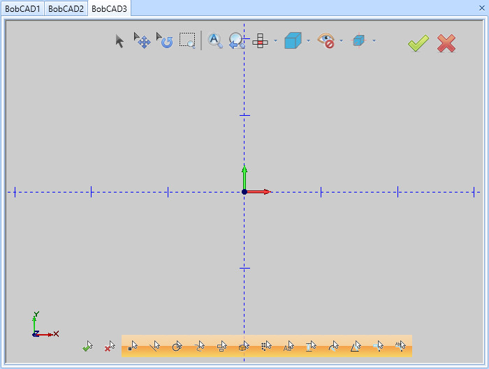 At the top of the graphics area, you will find the Document Toolbar. The Document Toolbar allows you to have the view options for the graphics area available to you no matter what ribbon is currently in use. For more information on the individual items in the document toolbar, see The Document Toolbar topic.