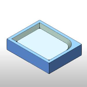 The V-Carve feature type is generally used to engrave text, arcs, lines and splines in a 3-dimensional form with 3-axis tool motion, with pocketing of open spaces in the selected profiles if necessary. There are two V-Carve operation types, Tapered Pocketing and V-Carve Finishing (engraving). This example uses the both operations, one to perform the pocketing with an endmill, and the second to cut a tapered wall around the pocket.