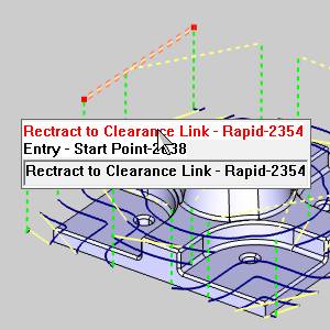 Note: When toolpath elements are close enough together, attempting to select one may cause a dialog to appear.This dialog will allow you to select, from the dialog list, the intended toolpath element, as seen in the images below.