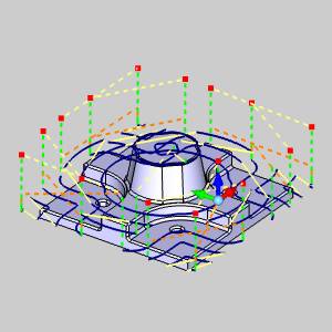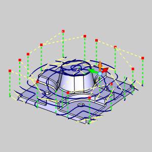 We now, need to select the Point Pick check box under the Selected Toolpath Elements list so that we can pick the points where the vertical and horizontal rapids meet.Once this is selected, we will move and rotate the part, as needed, to pick all sixteen toolpath points shown in the images below.