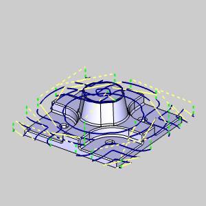 1. In the CAM Tree, click the  Flatlands operation of the Feature 3 Axis to highlight the toolpath in the graphics area.