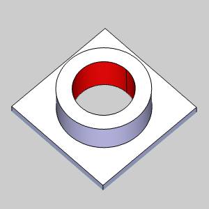 The part geometry for this example is shown next. Stock has been created using the Solid Model option, and the machining origin is placed at the top and center of the stock. Because we are making a 2-inch ID thread, the hole diameter of the part is 1.8125 inches.