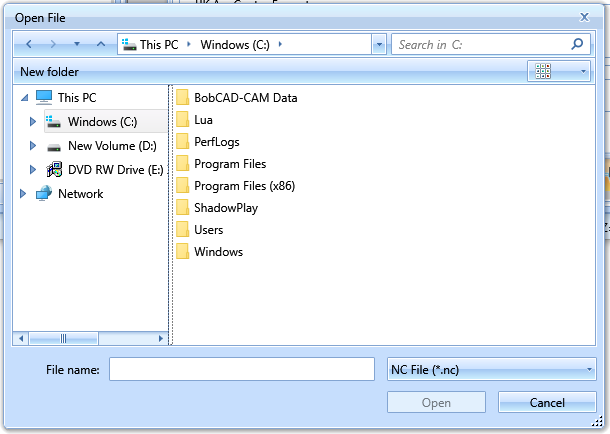 filename = Bcc.FileOpenDialogBox({ Filter="Text File (*.txt)|*.txt|NC File (*.nc)|*.nc|Excel Worksheets (*.xls;*.xlsx)|*.xls;*.xlsx|All Files (*.*)|*.*", FilterIndex=1, InitialDirectory="C:/"})