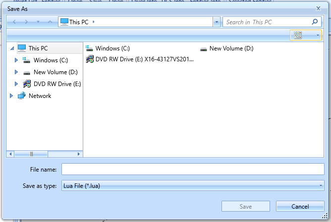 - InitialDirectory – The directory displayed within the save dialog when initialized