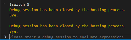 So next we need to type !switch 8 into the debug console to tell the system you are wanting to debug the files inside the robodkPlugin folder.