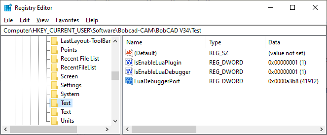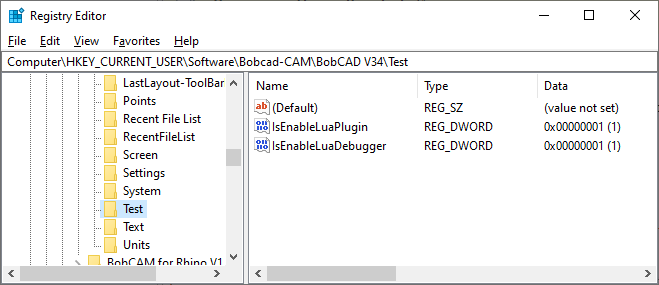 Computer\HKEY_CURRENT_USER\Software\BobCAD-CAM\<BobCAD Product>\Test