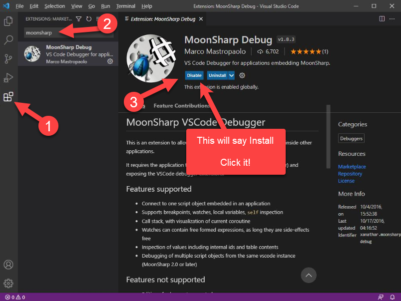 Step 2 - Install the MoonSharp Debug Extension