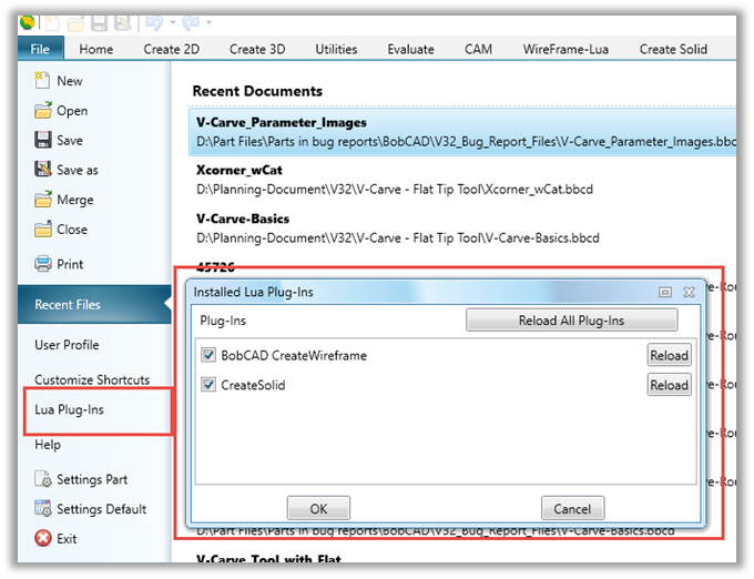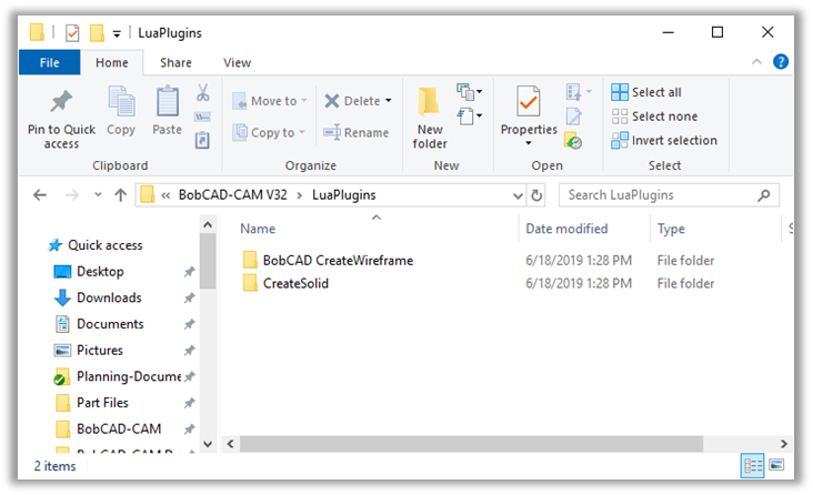 A folder named LuaPlugins should be located in your BobCAD-CAM Data\BobCAD-CAM V##\ folder which will house the Lua plug-ins that you create.