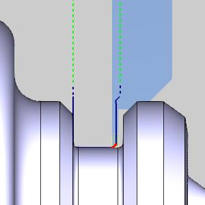 On with Collision Detection - the system compensates for the tool nose radius and the insert geometry and avoids any detected collisions.