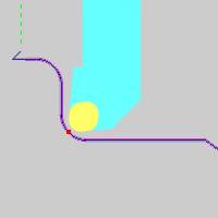 Each tool has a theoretical point placed on it as seen in red in the animation below. In the case of tools with a radius of any size, this point is not actually on the tool, but on the horizontal and vertical intersections of the radius. It is this point that the toolpath plots out. When compensation is used, it is designed to place the actual tool and not just its theoretical point on the geometry. This can be accomplished with System Compensation, Machine Compensation, or a combination of the two.