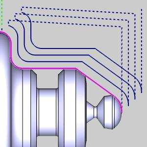 Onwithout Collision Detection - the system compensates for the tool nose radius and the insert geometry without checking for collisions.