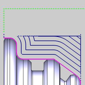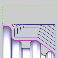 Onwithout Collision Detection - the system compensates for the tool nose radius and the insert geometry without checking for collisions.