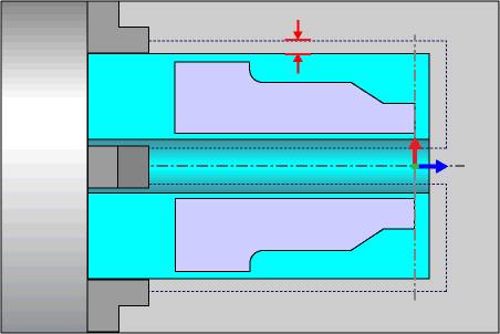Important: The software automatically populates the Stock Bounds parameters in the Clearance dialog box for you based on the stock geometry and the machining origin. It is important that you properly define the machining origin location and orientation (axes directions) first, so that the software can populate the correct values for you in the Clearance dialog box.