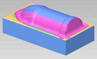 The following picture shows a machining of a bottle. The material is colorized after the different tools being used. As you can see there are four different tools (or operations) used for the machining.