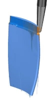 The following picture shows a machining of a turbine blade. The colorization is from blue (low rotation speed) to orange (high rotation speed). You see that especially in the small corner radius the orientation speed is high. The quality in this area could suffer.