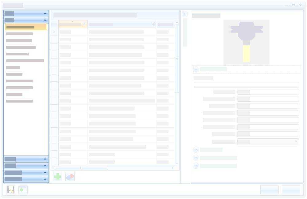 The left-most portion of the Tool Library is the Tool Panel Bar which groups the tools. The tool are divided first by Drill, Mill, Lathe, Laser, Plasma, and Waterjet. Clicking on a particular group will display the available tool types in that group. Finally, clicking on a particular tool type will show all the tools available tools of that type.