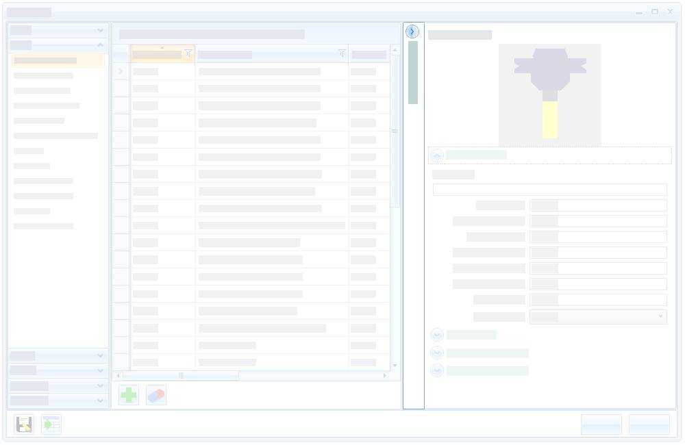 Upon opening the Tool Library, the Tool Parameter Dialog will be collapsed. To expand the Tool Parameter Dialog, click the chevron icon. With the Tool Parameter Dialog expanded, click the chevron icon to collapse it. The Tool Parameter Grid Splitter can also be used to resize the Tool Parameter Dialog. Hover over the left side of the Tool Parameter Grid Splitter until the mouse icon displays as the double headed arrow. You can then hold left-click and drag the dialog to the desired size.
