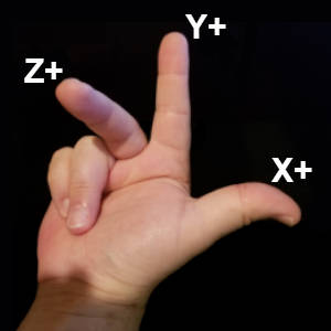 The Right-Hand Rule is a method used to remember the orientation and directions of the axes in the Cartesian Coordinate System in 3-dimensional space. In the images below you can see the proper application of the Right-Hand Rule for the purpose of CNC machining. Each finger represents a positive direction for each axis. Though different machine tools will orient the coordinate system differently, the relationship between these three axes does not change.