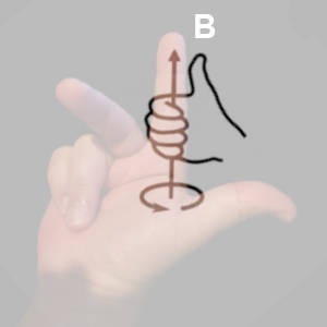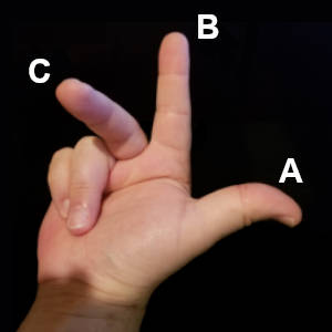 Unlike the X, Y, Z axes, the A, B, C, are axes of rotation, so another thing we may want to know is the positive direction of rotation. This can also be found by using your right hand and aligning your thumb to any of the positive axis directions and looking at the way your fingers would be wrapped around that axis.