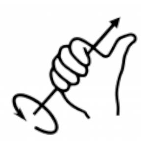 As seen in the image below, standard axes of rotation are also defined by the fingers of the Right-Hand Rule.