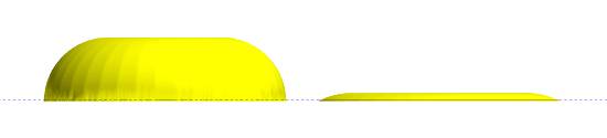 Tip: Notice that the Start Angle is changed to 60 degrees, instead of 0 degrees. The embossed model now starts 60 degrees into the defined Cross Section. The result is that the edge of the model has a more gradual slope in relation to the stock. The following image shows two identical Regular Emboss features with the first starting at 0 degrees, and the second starting at 60 degrees.