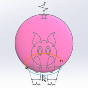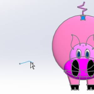 1. In the graphics area, select the geometry that represents the tail of the pig as shown next.