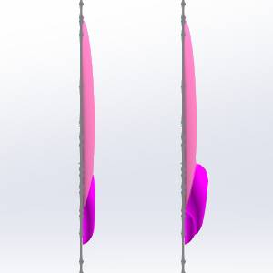 When both rails point in the same direction, rather than opposing directions, the result can be adjusted with the direction of the Cross-Section. Notice the result above with the Cross-Section direction pointing to the right.