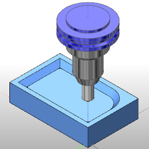 The V-Carve feature type is generally used to engrave text, arcs, lines and splines in a 3-dimensional form with 3-axis tool motion, with pocketing of open spaces in the selected profiles if necessary. There are two V-Carve operation types, Tapered Pocketing and V-Carve Finishing (engraving). This example uses the both operations, one to perform the pocketing with an endmill, and the second to cut a tapered wall around the pocket.