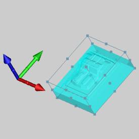 Tip: The bounding entities that are created in the Machine Setup dialog box are for your convenience in setting the machining origin. You are not limited to using these entities when setting the machining origin. To alter the alignment of a particular axis, click in its list box to give it focus, and then select an entity in the graphics area. Selecting a line will set the axis parallel to it. Selecting a point will direct the axis along the line formed between its zero and the selected point.