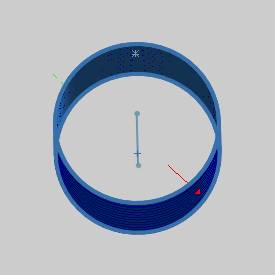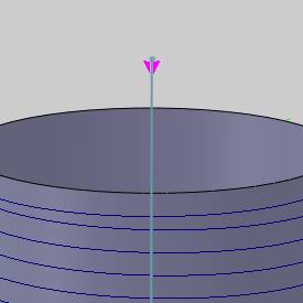 The surface normal of Drive Surfaces must point away from the Drive Surface in order to create the toolpath on the proper side of the surface. For this example, because the geometry used for the part is a surface and not a solid, the surface normal can be used to reverse the machining side of the part. To elaborate, if the cylindrical shell/surface is given a thickness, meaning that there is an outer surface and an inner surface, then there is a normal for each surface. In this case, the outer surface normal must point out, and the inner surface normal must point in. The machining is then applied to the selected surface.