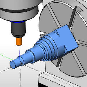 In the example file provided, the Tool Crib is already equipped with the necessary tools and the stock and Machine Setup are already defined. The part is simulated using the BC_Porting_4x_HeadTable_Rotary_Only machine.