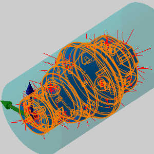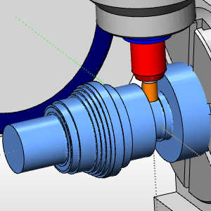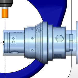In the example file provided, the Tool Crib is already equipped with the necessary tools and the stock and Machine Setup are already defined. The part is simulated using the BC_Porting_4x_HeadTable_Rotary_Only machine.