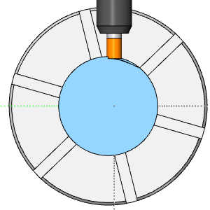 Important: The radial start begins from the center of rotation. With a Start of zero, and the end at our specified distance we are only doing the last few depths of the part.