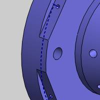 For the last two cross drill features, the toolpath is acceptable, but we want to make a few changes. In the toolpath for the blind holes, the rapid plane is properly clearing the flats on the front of the model when moving from one side to the other (within groups) so no change is needed. The retract distance between hole groups (group retracts) however, can be reduced. -