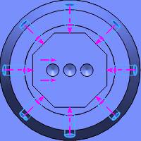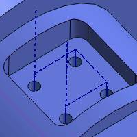Note that the holes inside of the pocket cannot be drilled using cross drilling, because these holes do not point to center line, thus they require Y-axis (multiaxis) movement. This is also true for the angled holes, although they require full 5-axis movement. These holes are machined later in the multiaxis portion of this tutorial.