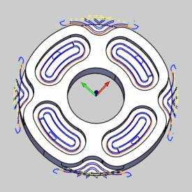 Important: When creating toolpath patterns using the 3D Rotate option, the toolpath pattern is not applied to any features that are contained in a Wrapping Group.